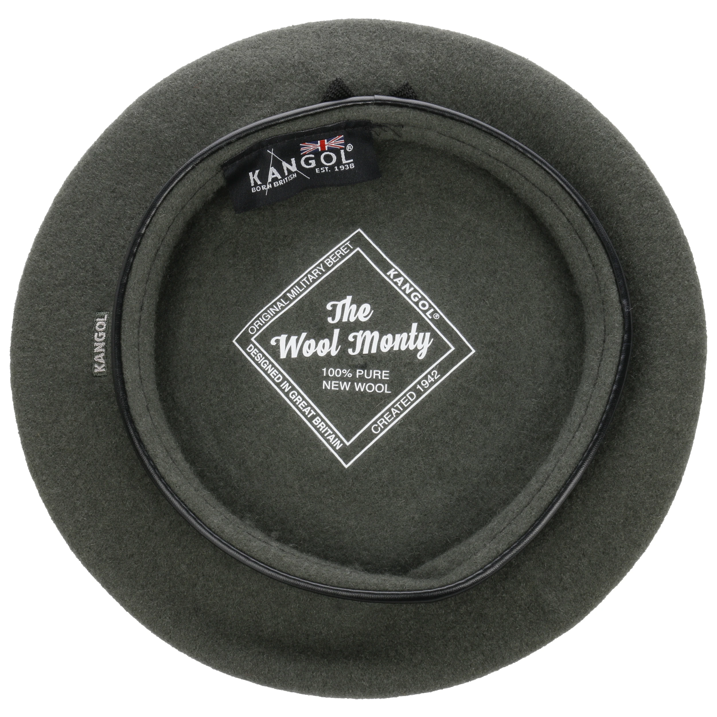 Das Einmalige an der klassischen Baske von Kangol ist der Kunstledereinfass am Bund.