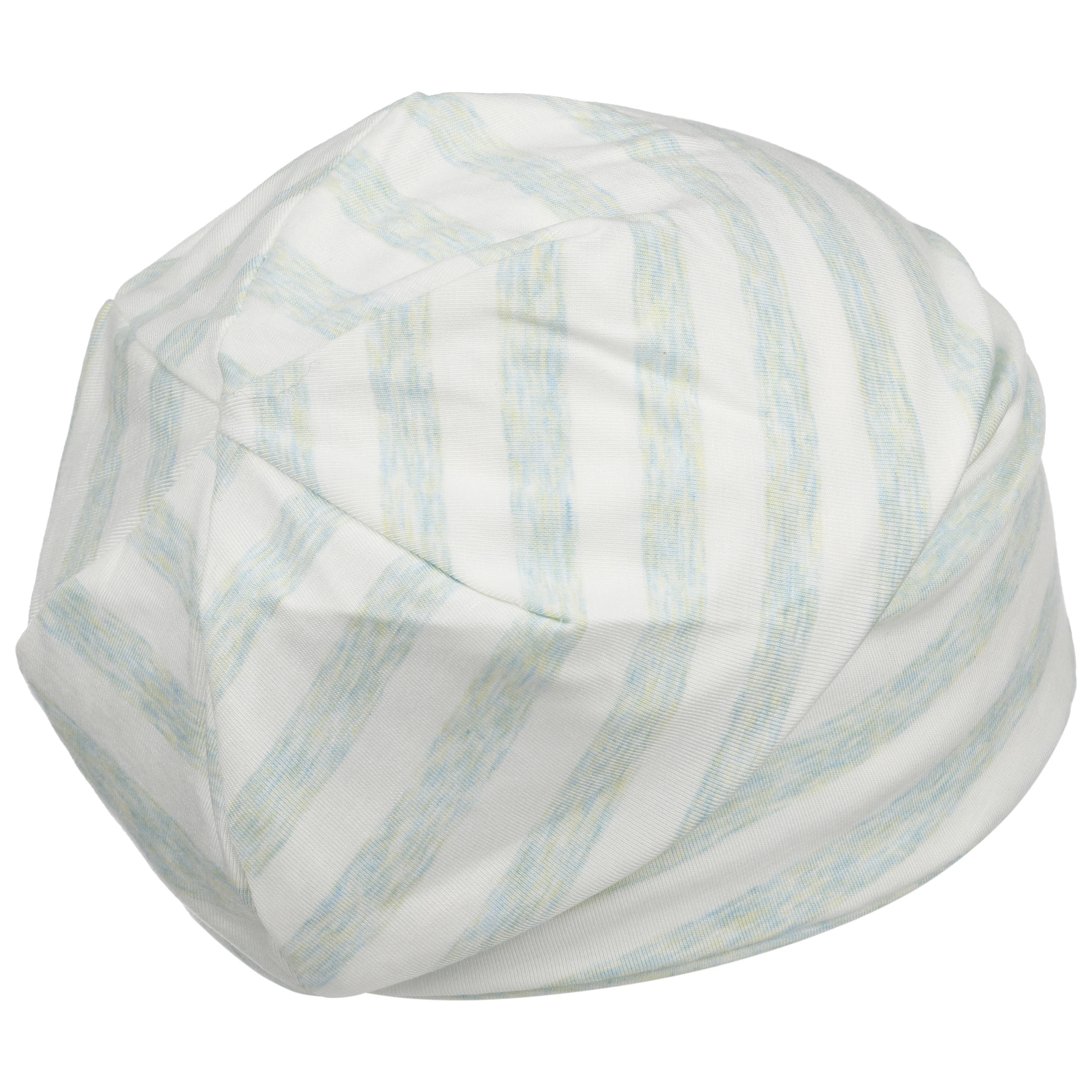 Während der hohe Anteil an Elasthan für die optimale Passform sorgt, bietet der üppige Baumwollanteil eine angenehm weiche Haptik. Ein zweifarbiges Allover-Muster aus horizontal ausgerichteten Streifen verleiht der Optik der Sommermütze eine unbeschwerte Dynamik.