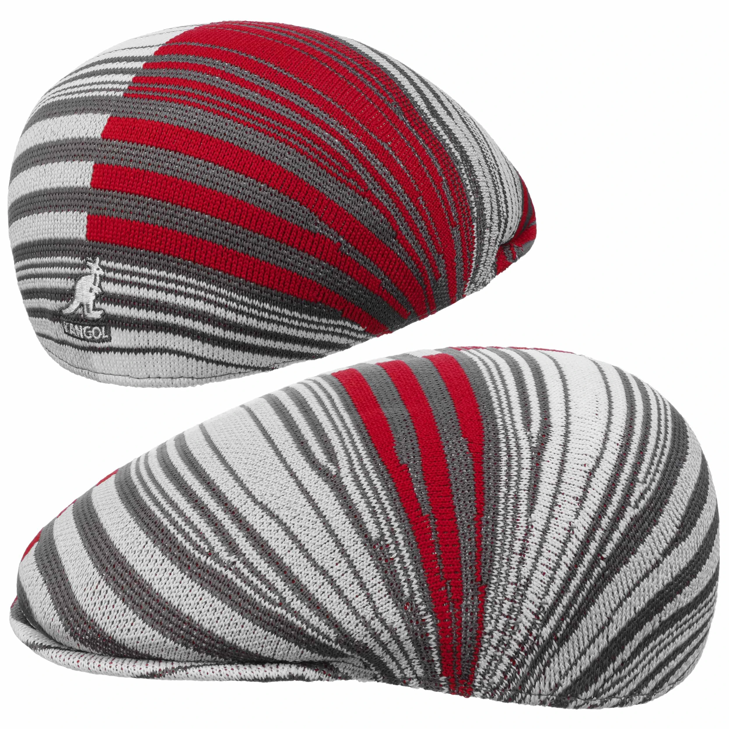 Unregelmäßige Streifen in kontrastreichen Farben betonen die dynamische Ausstrahlung der Flatcap von Kangol.