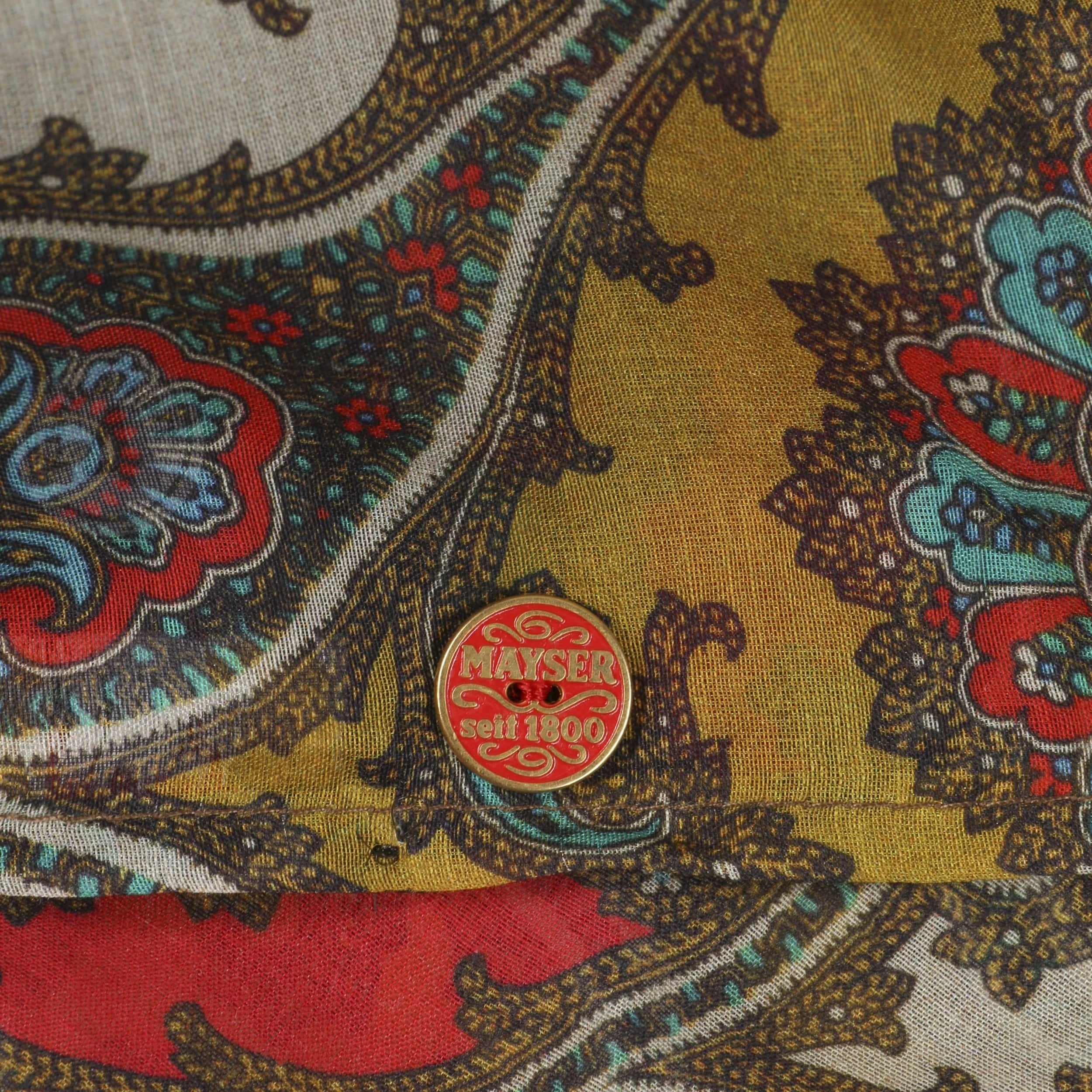 Mit seinem schönen Paisleymuster wirkt das edle Seidentuch aus dem Hause Mayser klassisch elegant.