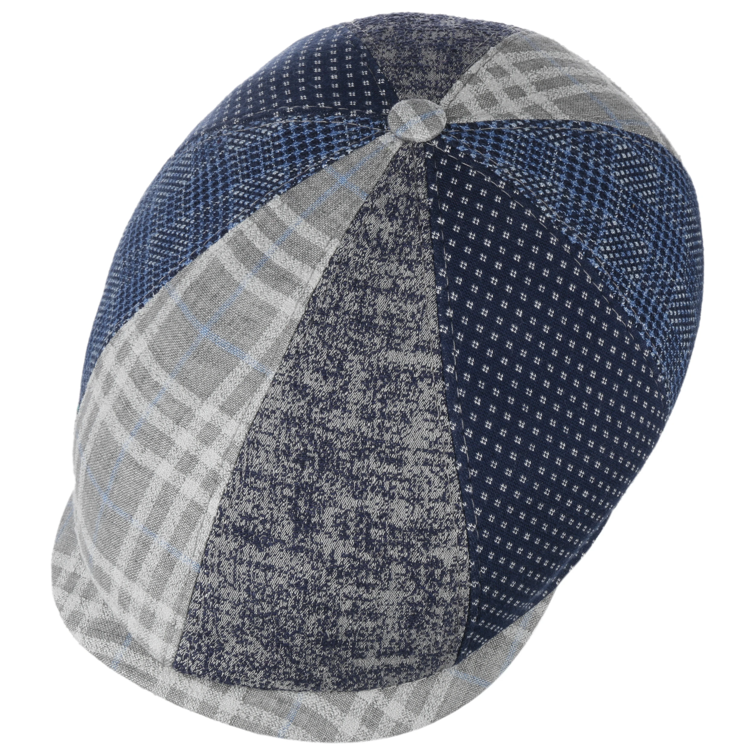 Sie ist mit einem weichen Futter aus 100% Baumwolle versehen, das einen hohen Tragekomfort gewährt. Die sommerlich leichte Kopfbedeckung im Patchwork-Design setzt sich aus acht unterschiedlich gemusterten Teilen zusammen. Kleine und große Karos wechseln sich mit melierten Partien und Panels mit Minimalmuster ab. Dank Stretchfutterband sitzt die Cap perfekt.