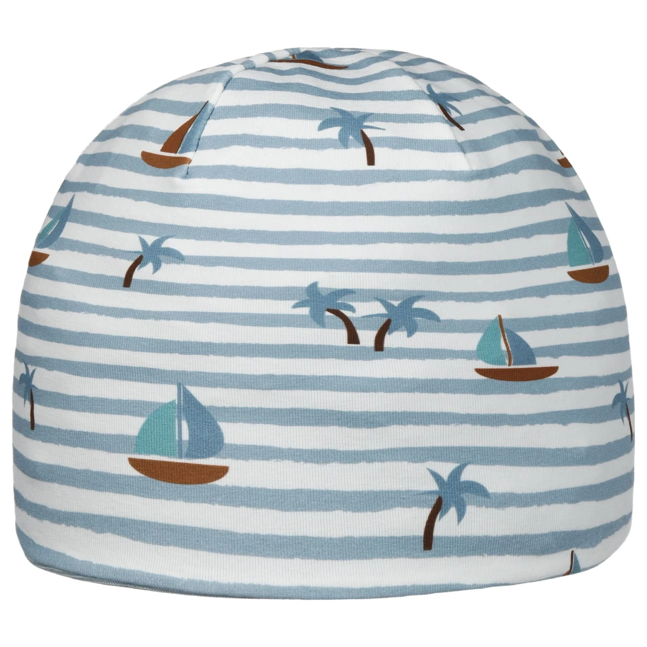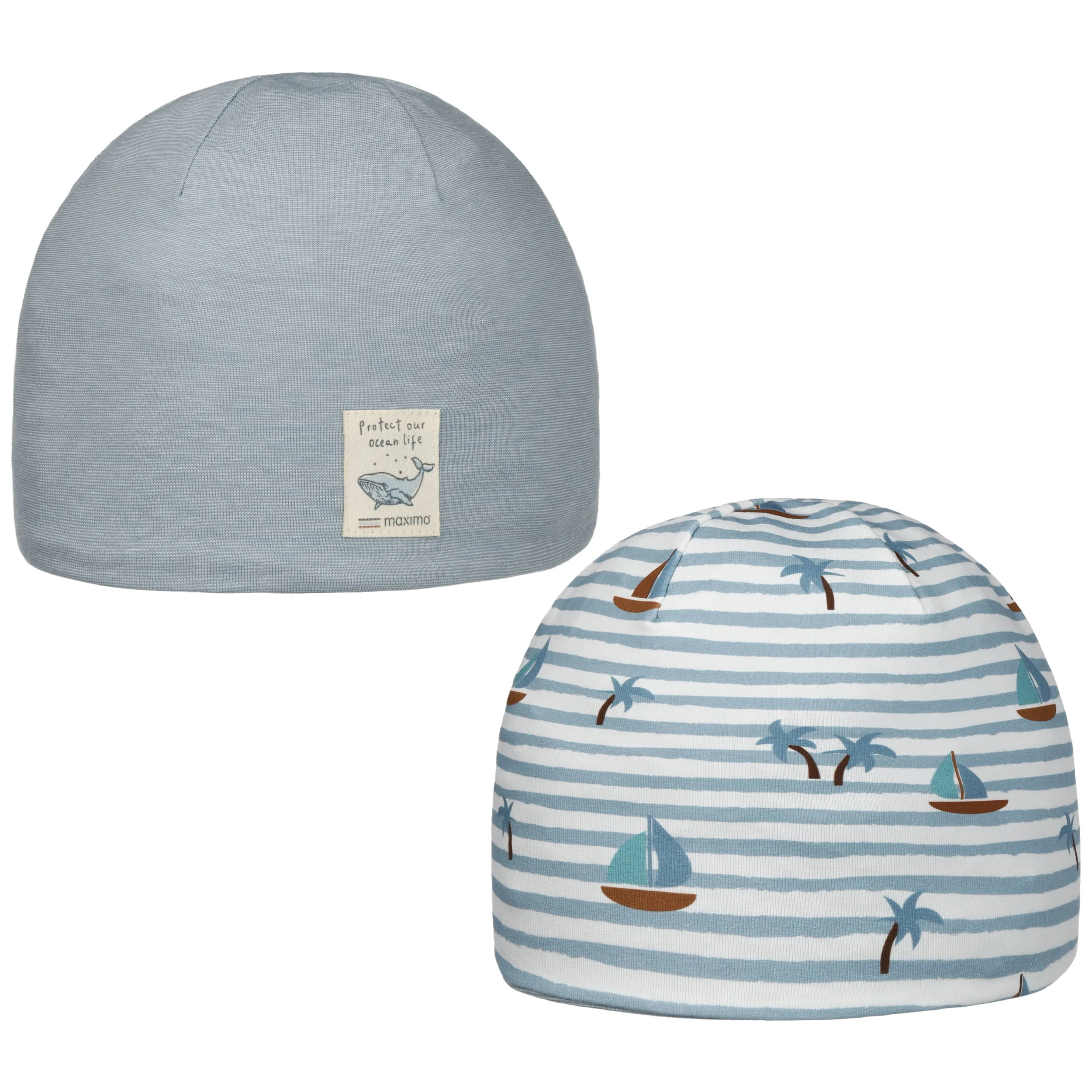 Die sommerliche Mütze von maximo präsentiert sich im praktischen Wendedesign, mit einer einfarbigen und einer gemusterten Seite.