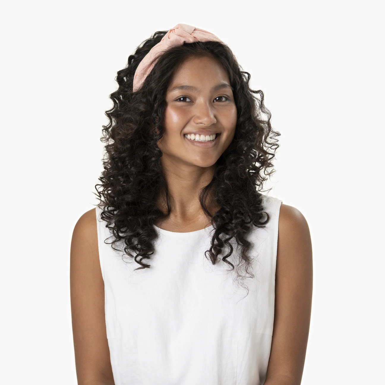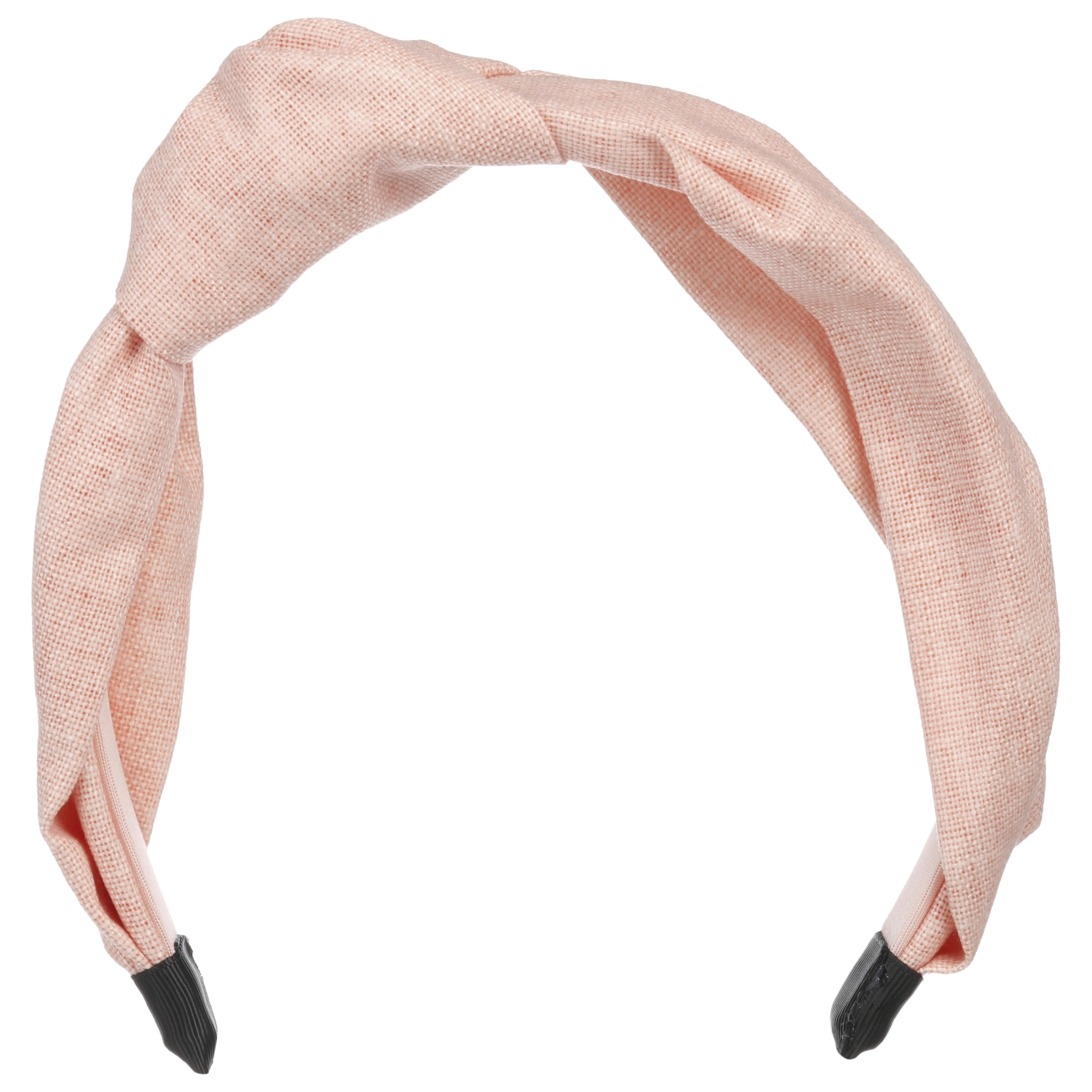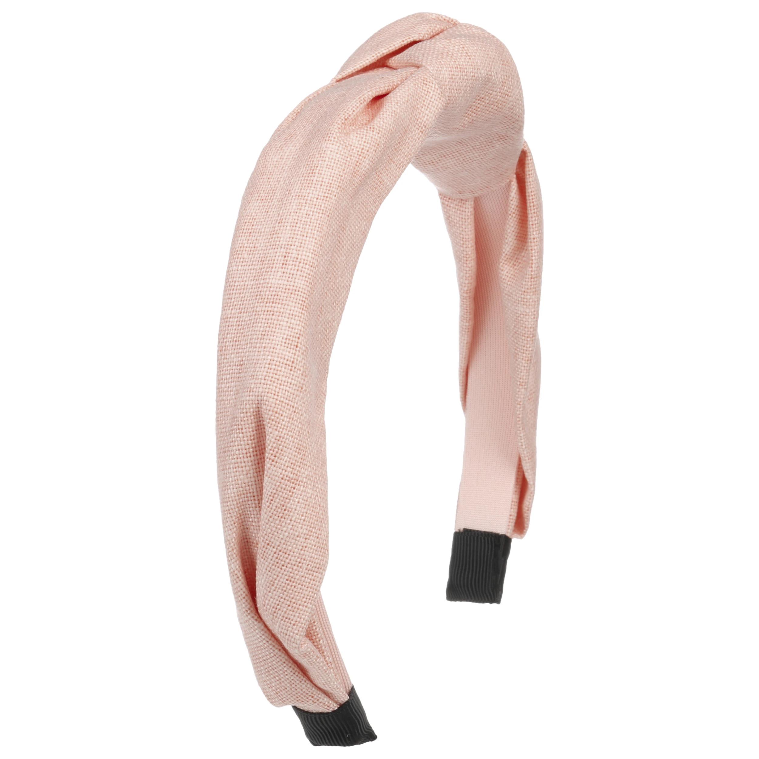 Um den festen bezogenen Reif legt sich eine weitere Schicht eines strukturierten Gewebes. Mit diesem locker und leicht drapierten Look erscheint das Accessoire – sobald es auf den Kopf gesetzt ist – wie ein Tuch, das seitlich am Kopf geknotet wurde.