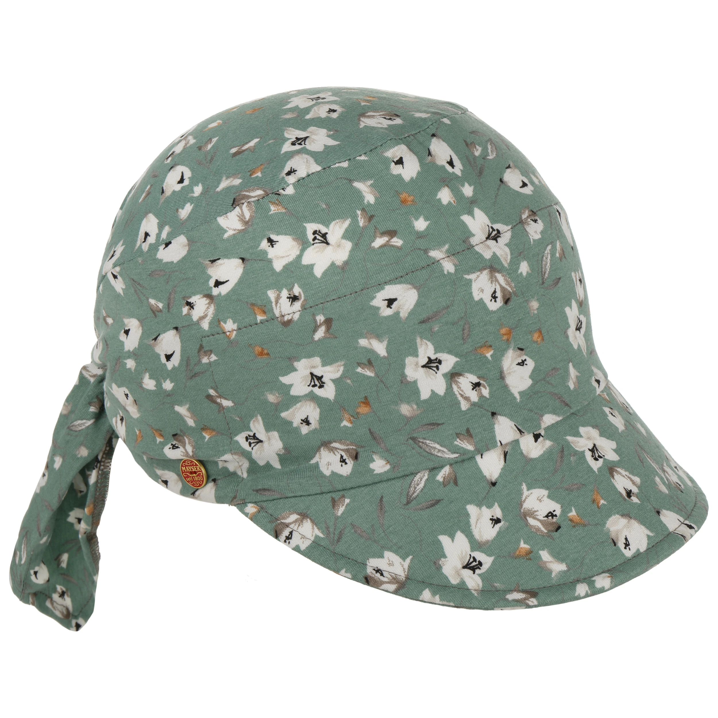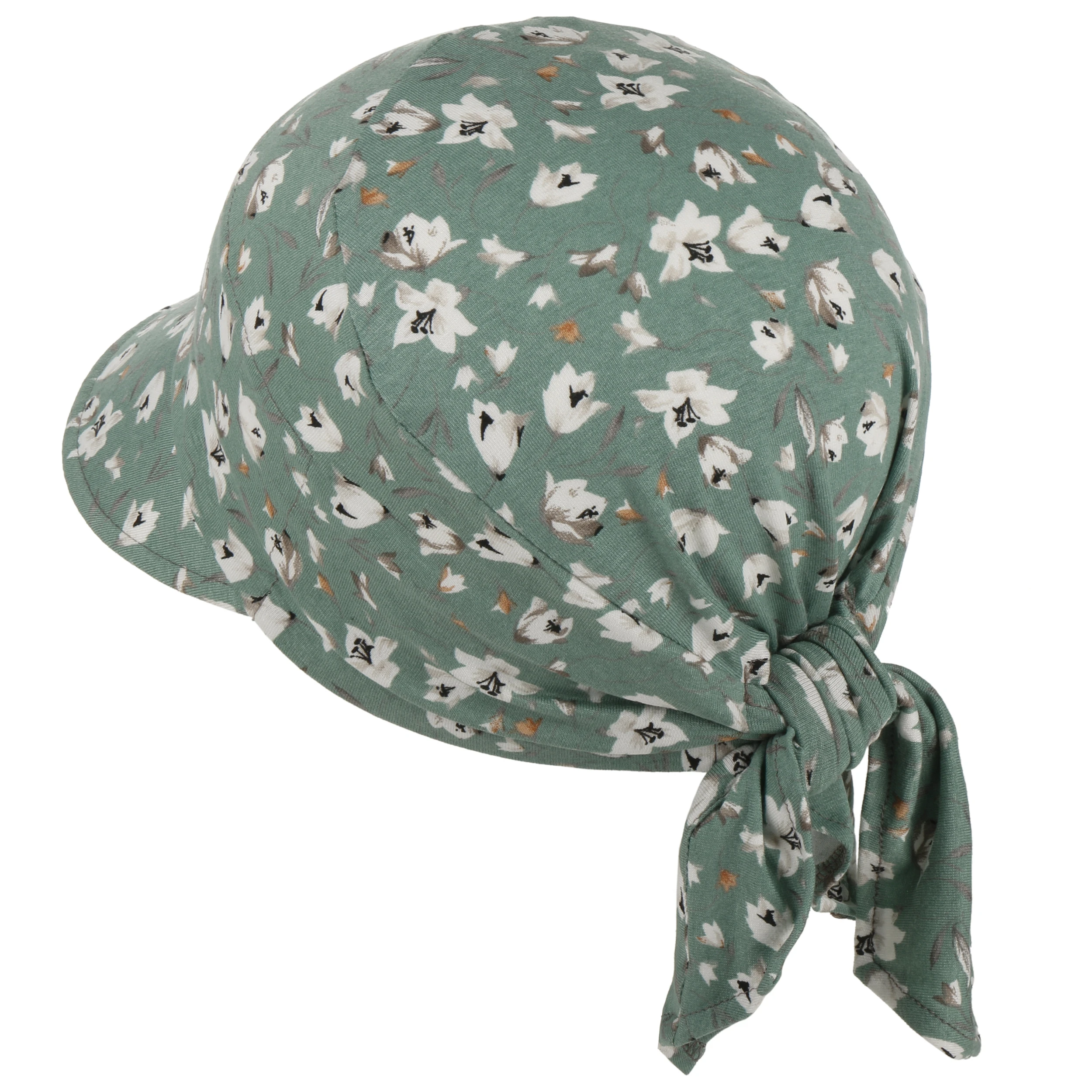 Elasthan sorgt für einen perfekten Sitz der mehrfarbigen Kopfbedeckung. Da die Cap am Hinterkopf bindbar ist, lässt sie sich individuell an den Kopfumfang anpassen. Ihr Schirm schützt vor blendender Sonne. Das zarte florale Muster unterstreicht den femininen, sommerlich-leichten Look des Accessoires.