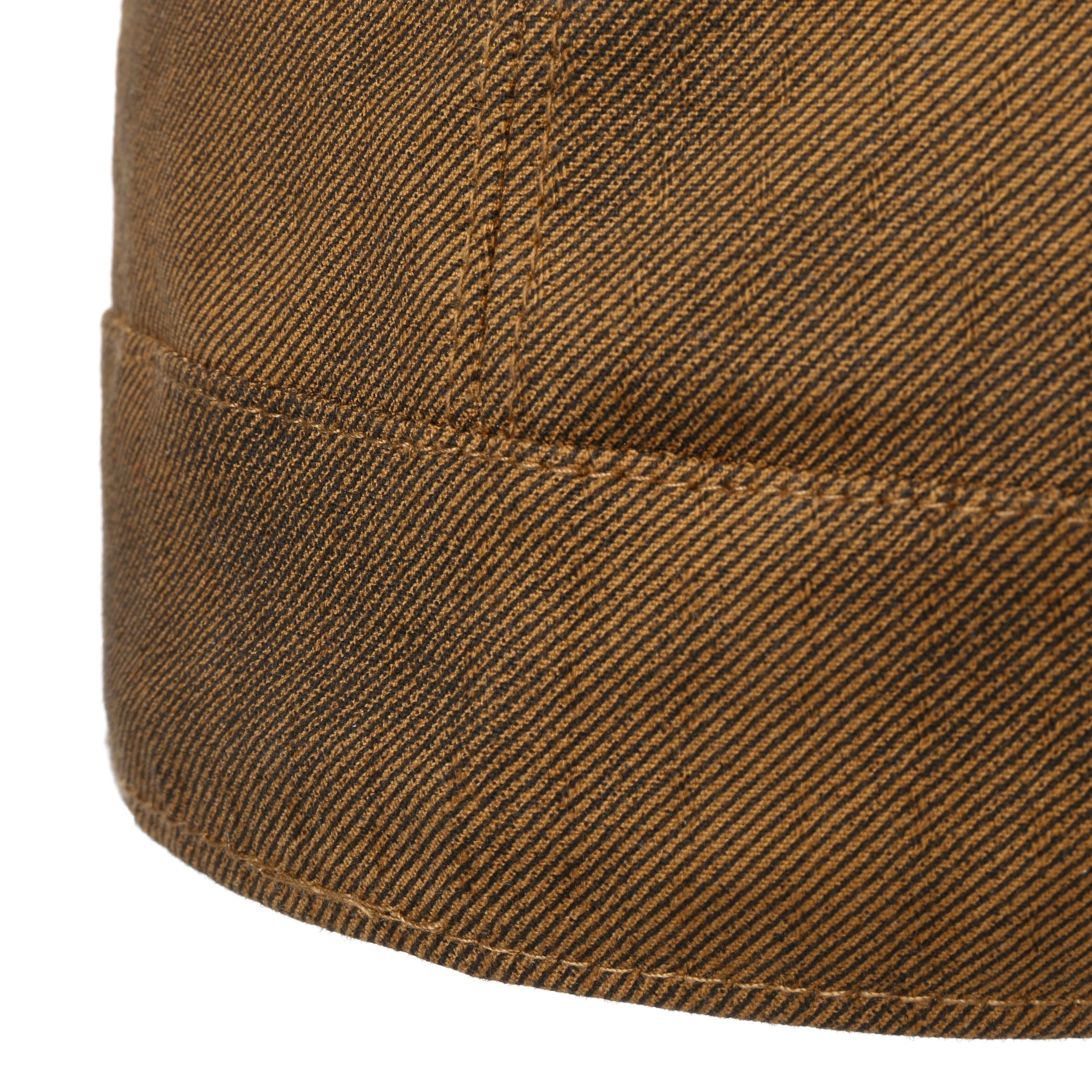 Die Übergänge der einzelnen Elemente werden von farblich harmonisch angepassten Nähten zur Geltung gebracht. Außerdem brechen sich an den Stellen, wo die einzelnen Parts zusammentreffen, die geradlinigen Strukturmuster des schönen groben Materials, aus dem die Schildmütze gefertigt ist.