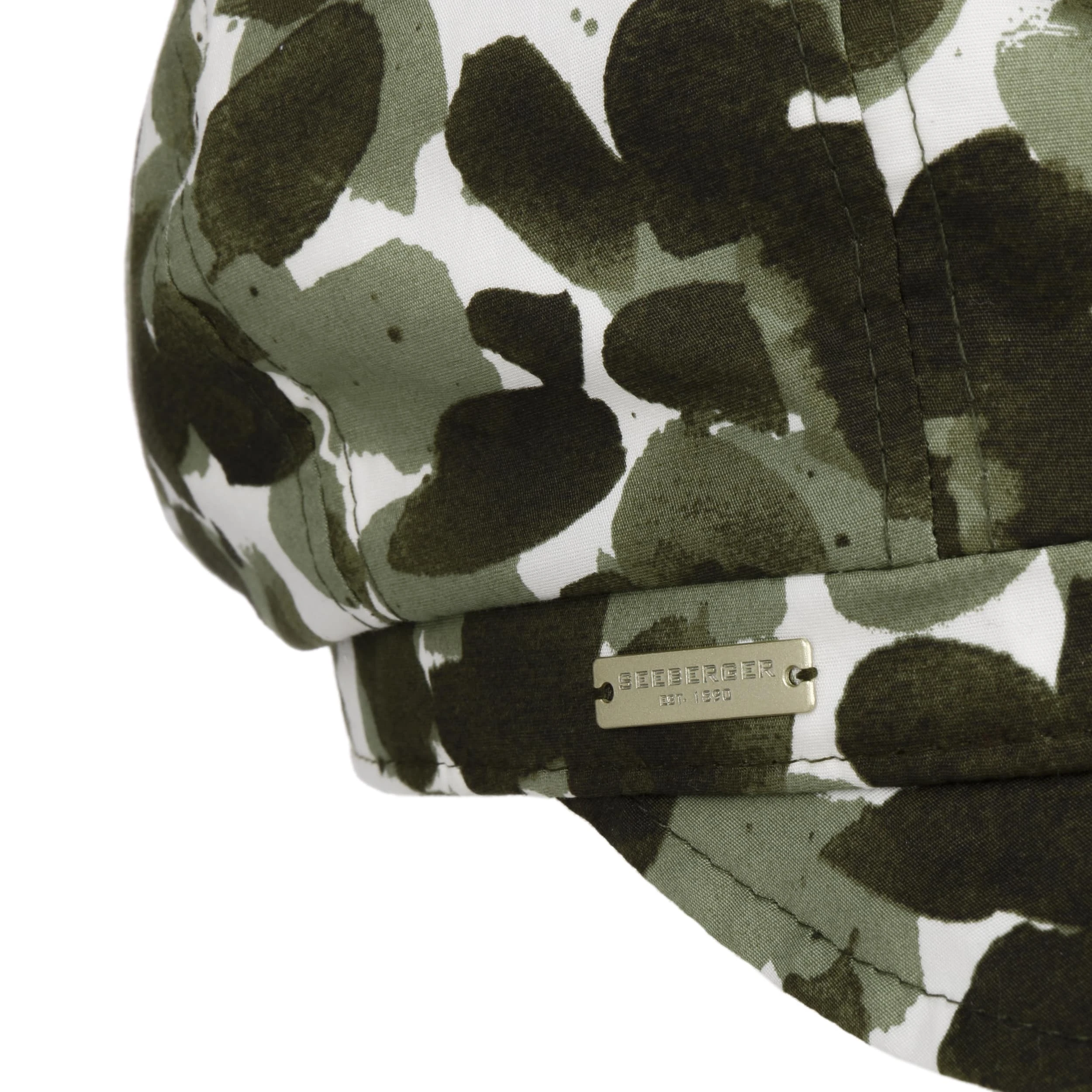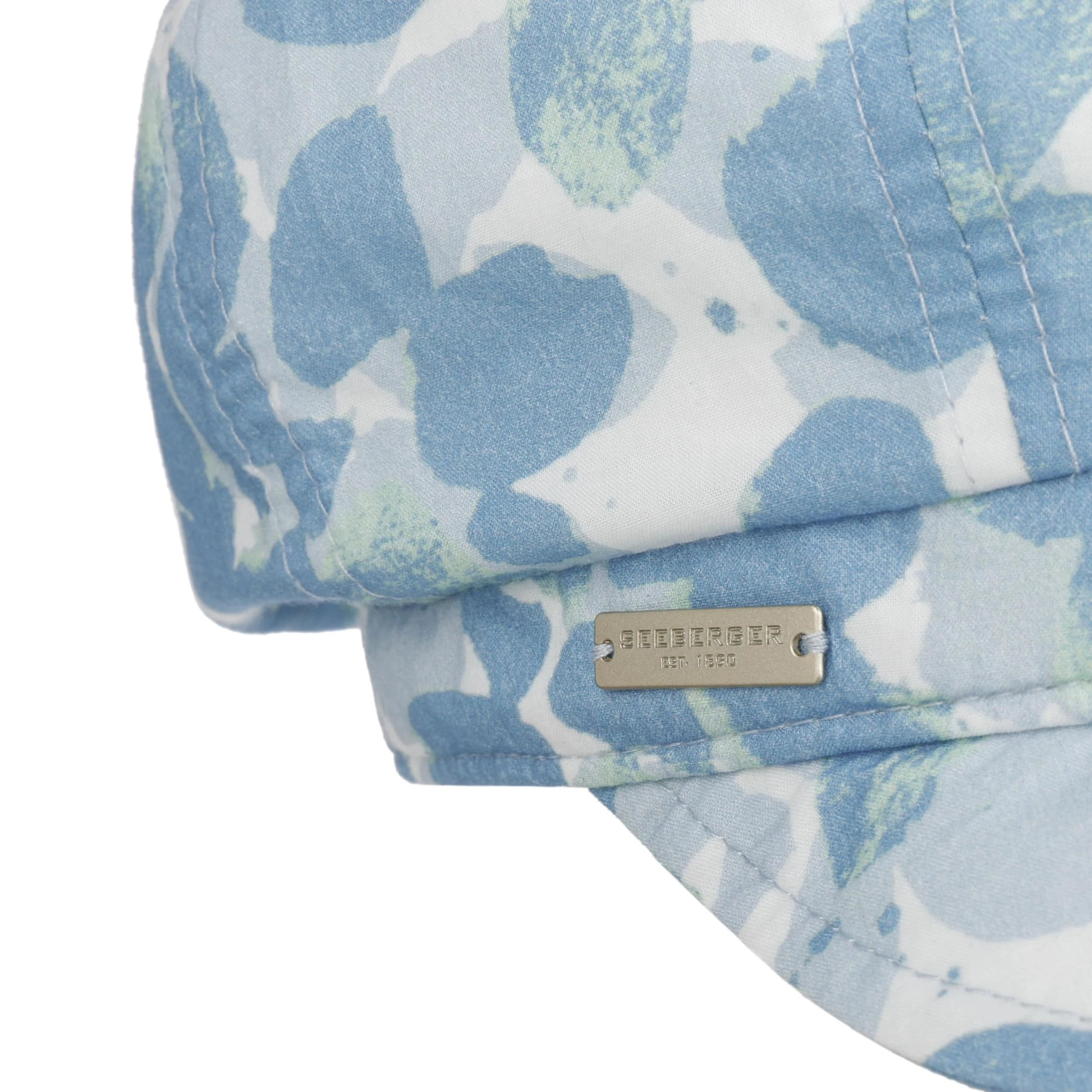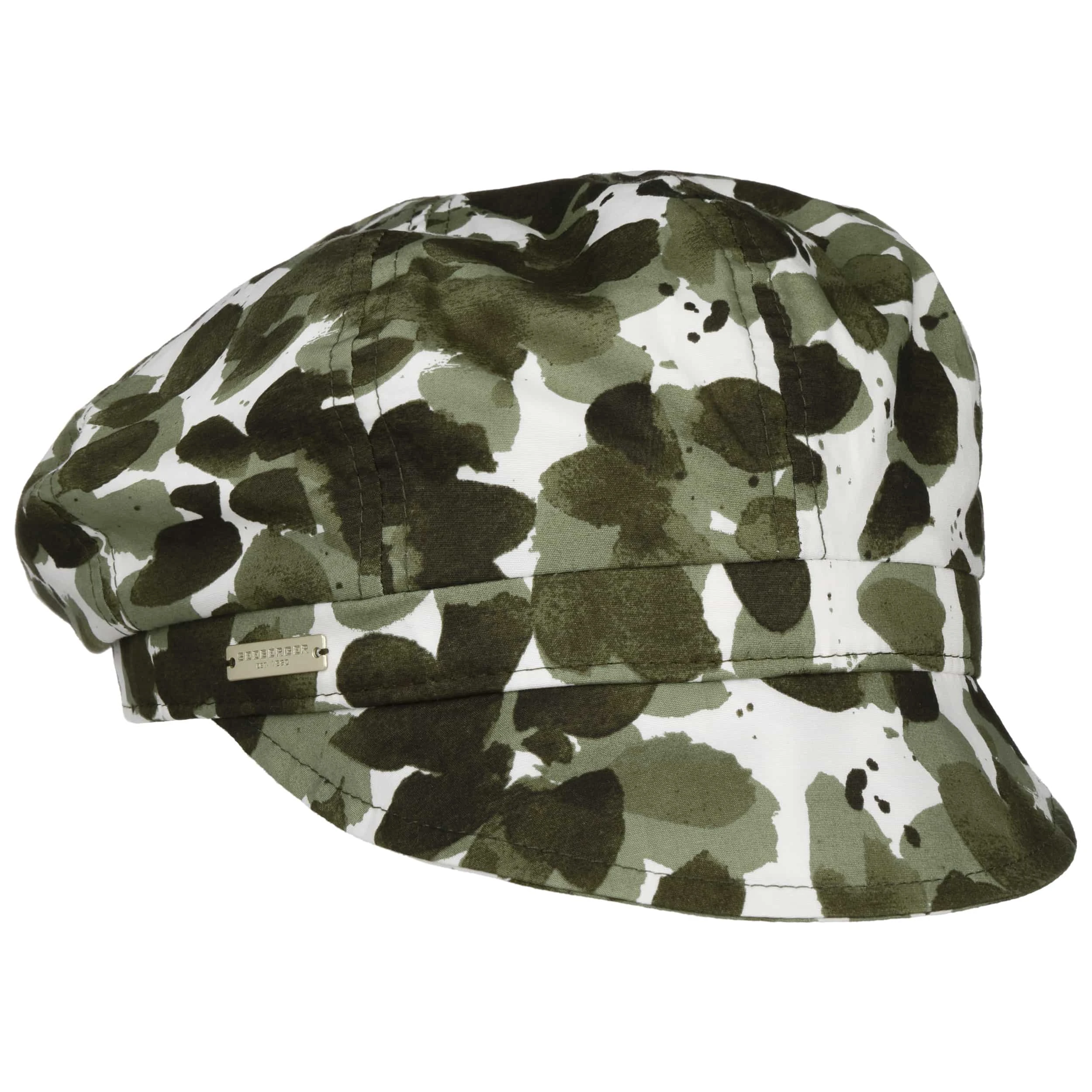 Ausgesprochen sommerlich präsentiert sich die Ballonmütze von Seeberger im Allover-Print mit apartem Blättermuster.