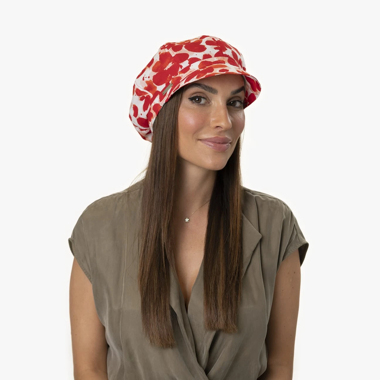 Sommerliche Leichtigkeit bieten auch das Gewebe und Futter aus 100% atmungsaktiver und hautsympathischer Baumwolle. Zum femininen Kleid kombiniert oder zur Jeans und T-Shirt getragen, macht die Kappe stets einen pfiffigen Eindruck. Ein am Hinterkopf integriertes Stretchband sorgt für eine bequeme Passform.