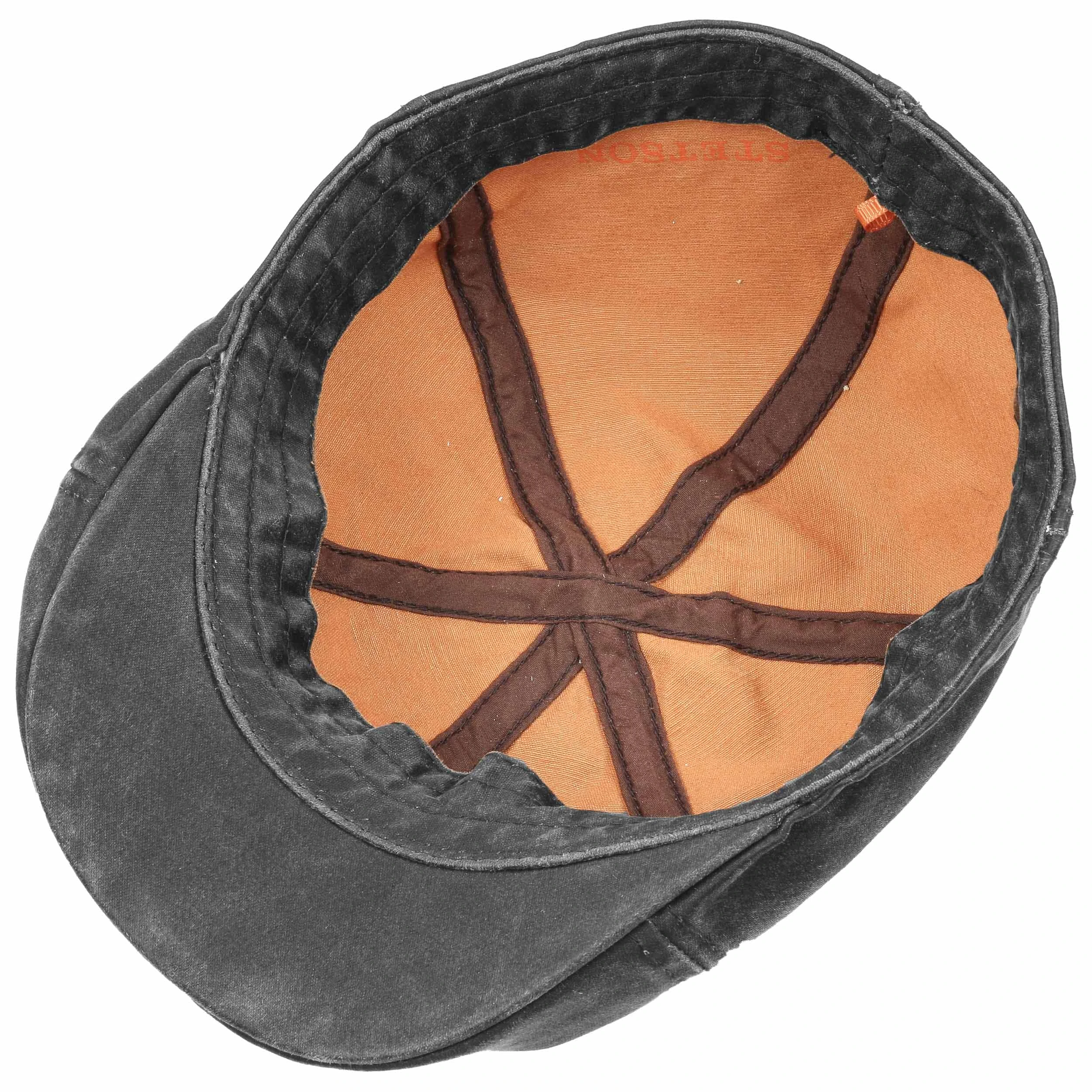 Beschichtete Baumwolle gibt der kopfbetonten Flatcap von Stetson einen lederenen Vintage-Look.