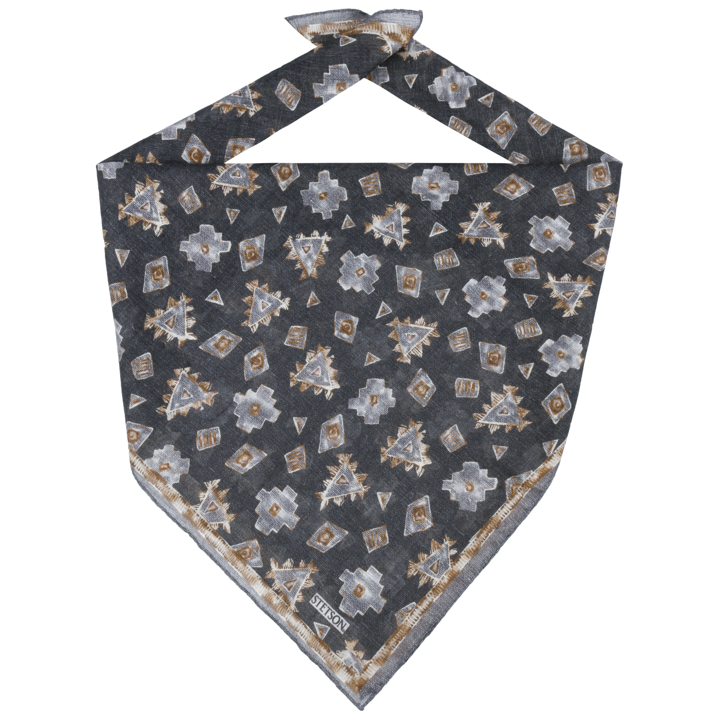 Das klassisch quadratische Bandana aus dem Hause Stetson kommt in einem schicken Allover-Muster daher.