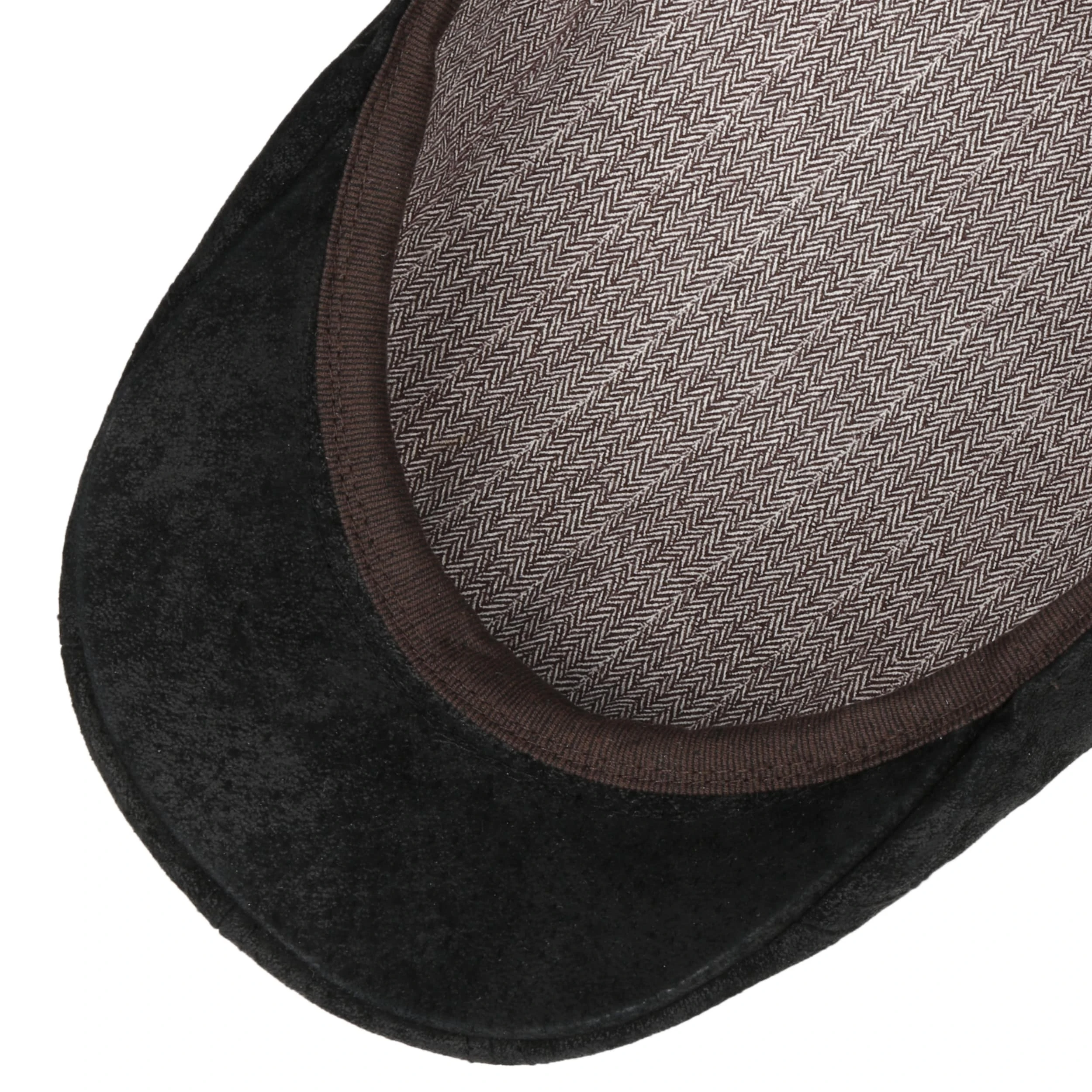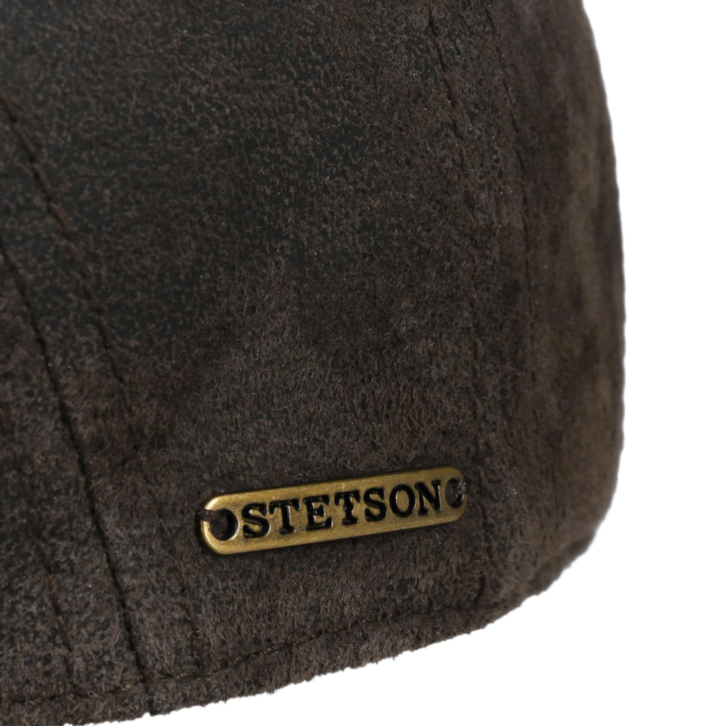 Mehrere Lederstreifen aneinandergenäht bauen die Schirmmütze von Stetson zusammen.