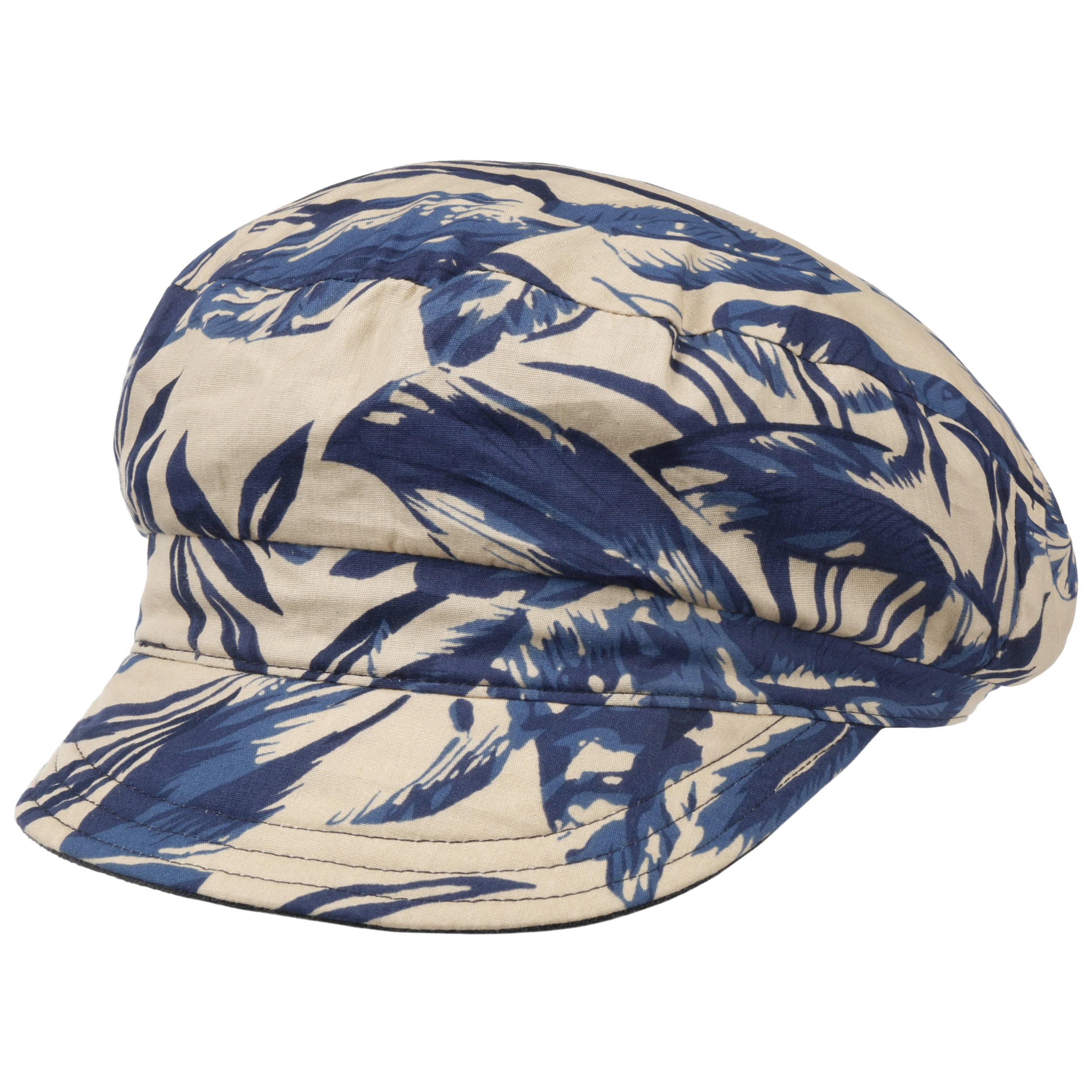 Die Ballonmütze von Lipodo zeigt sich auf der einen Seite unifarben und auf der anderen in stilvoll floralem Muster.