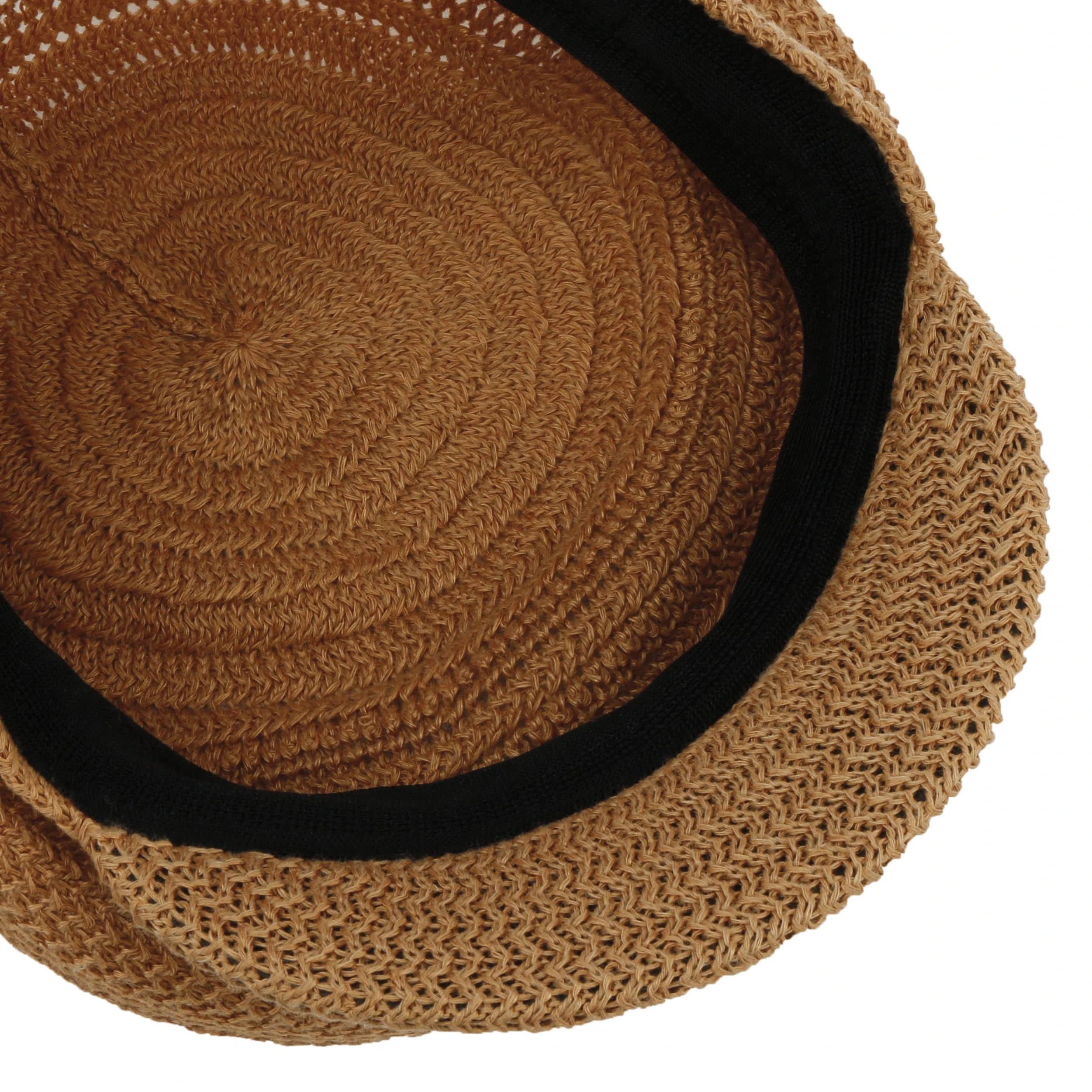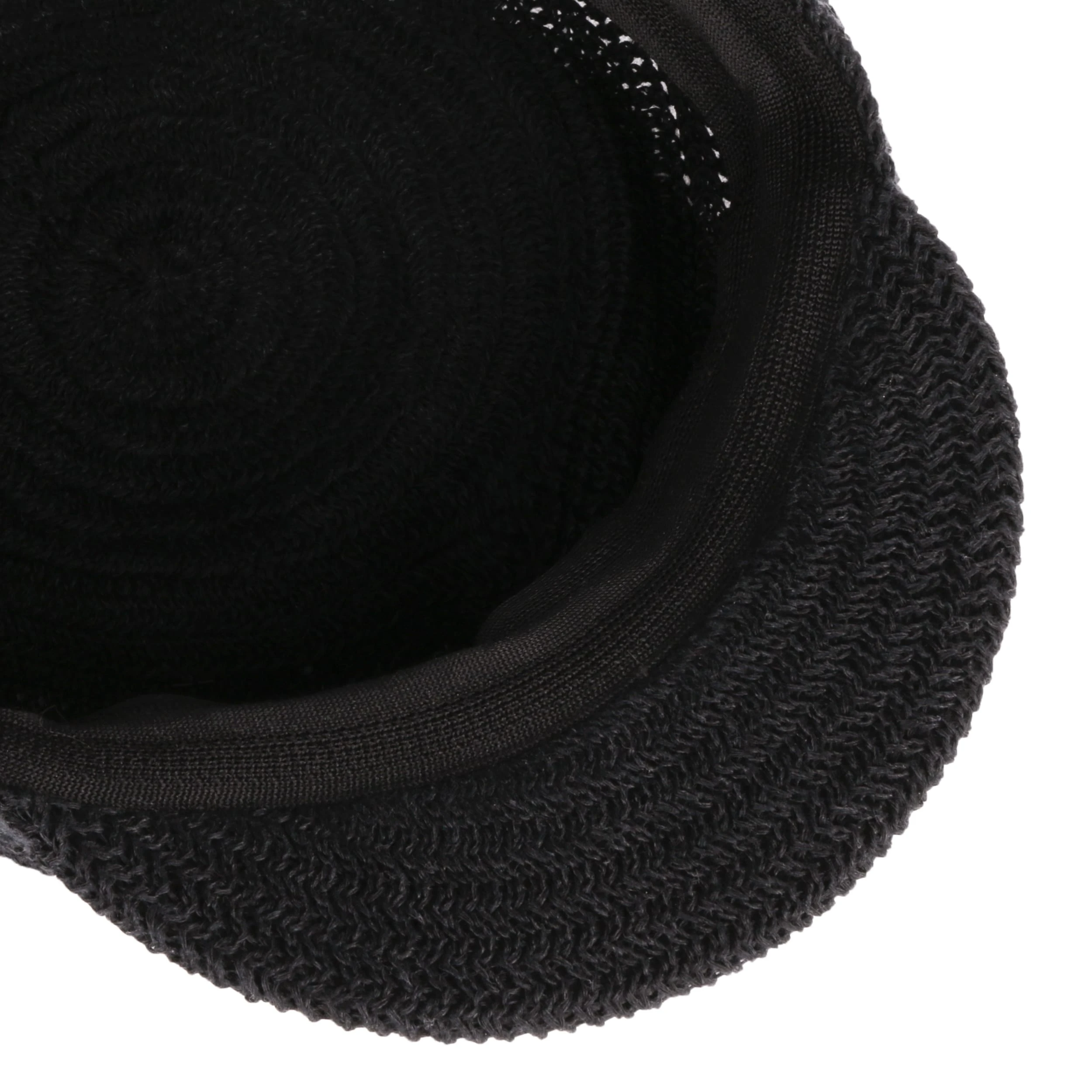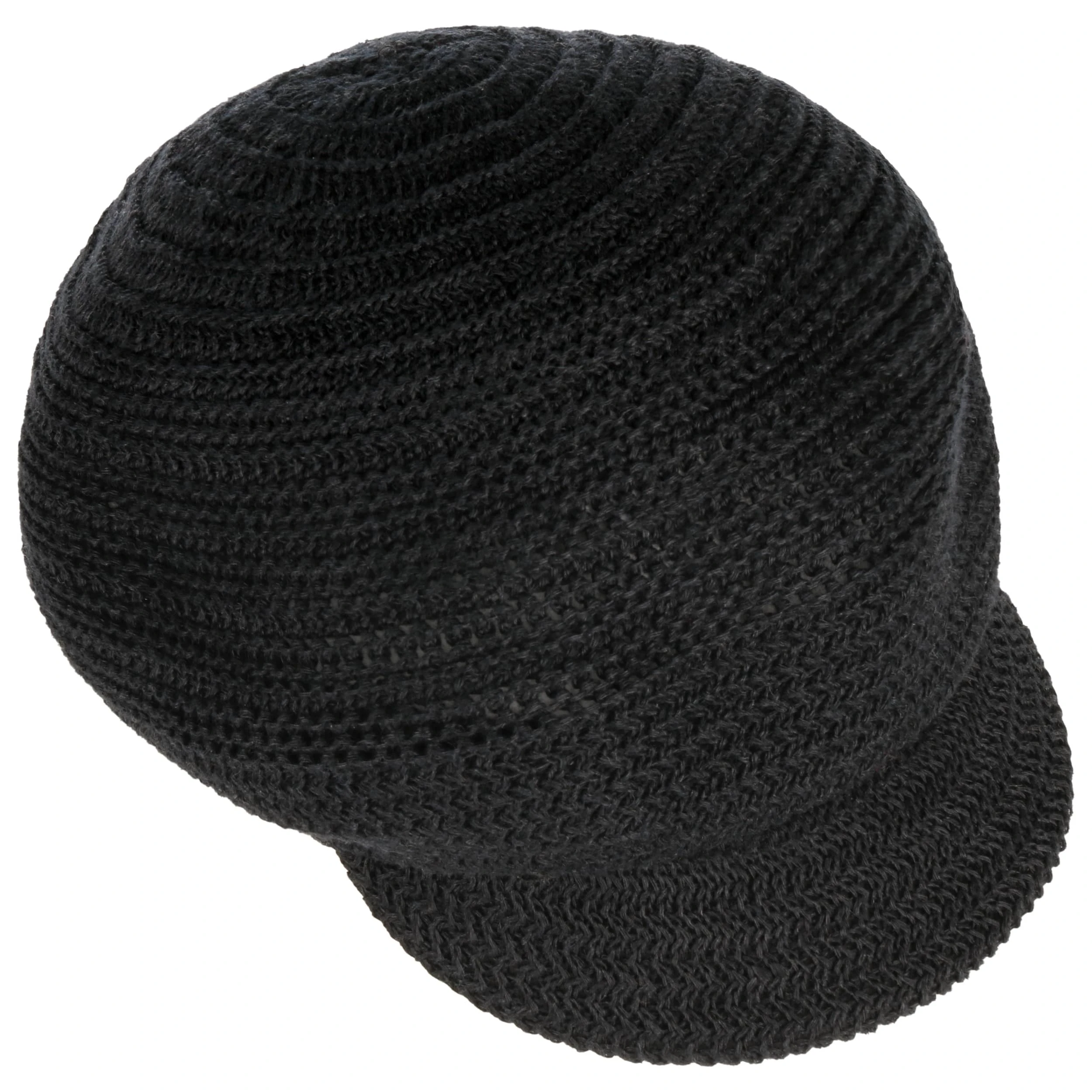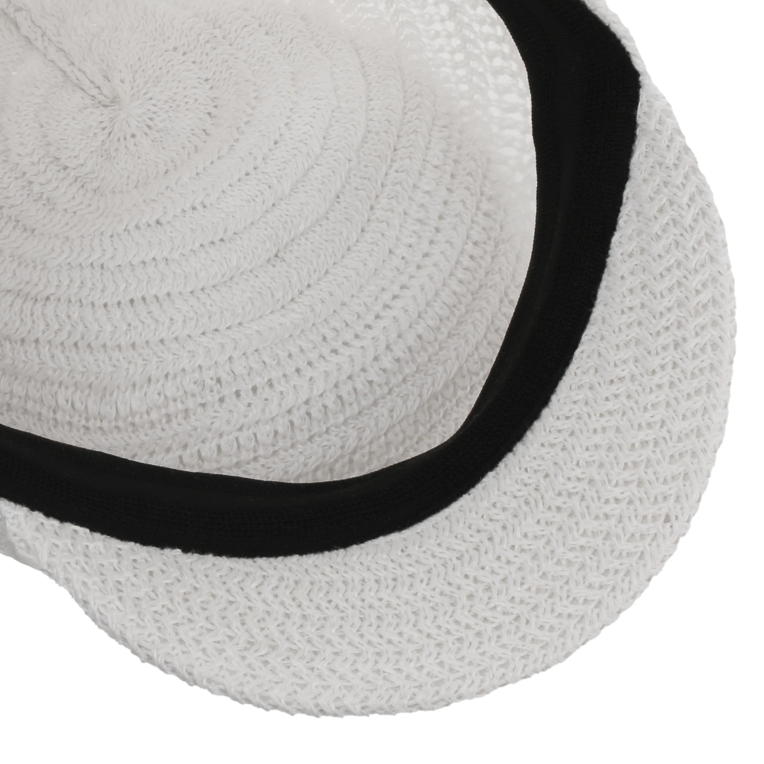 Luftige Maschen mit Zickzack-Dynamik ringeln sich um den luftigen Schirm der unifarbigen Ballonmütze und machen sie zum charmanten Topping eines lässigen Sommeroutfits.