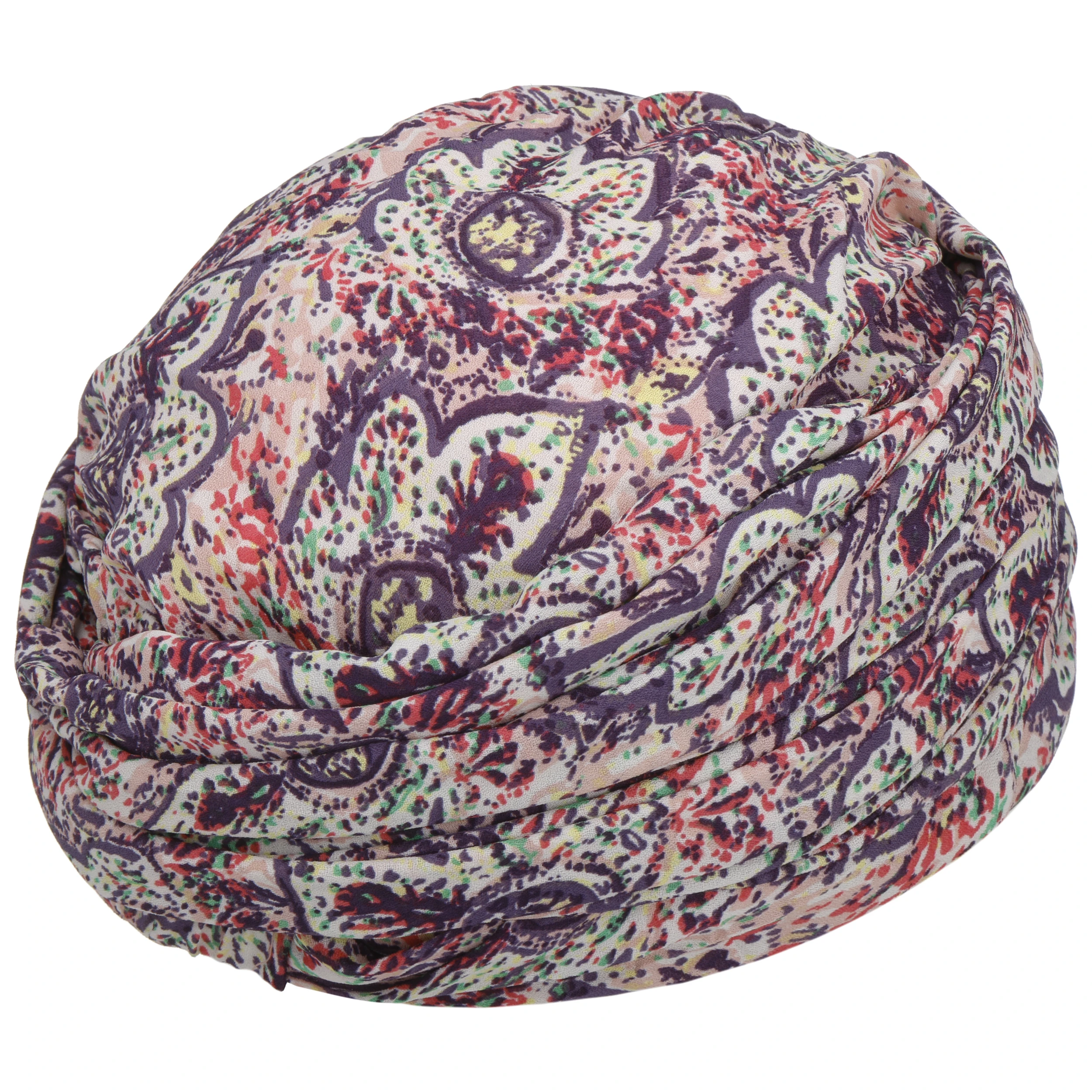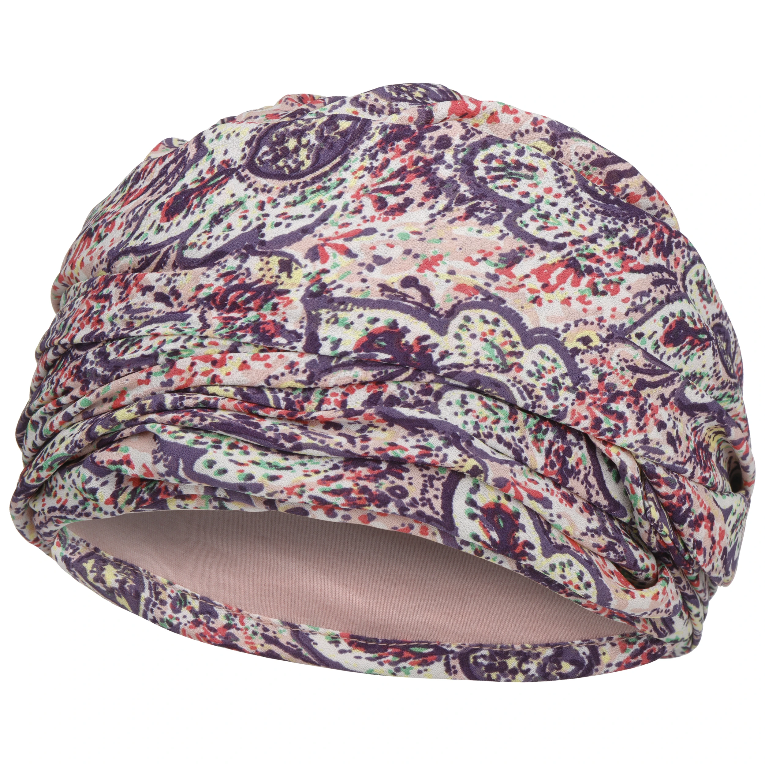 Der bunt gemusterte Turban von Christine Headwear ist mit einem angenehm weichen Futter aus Baumwolle und Elasthan versehen.