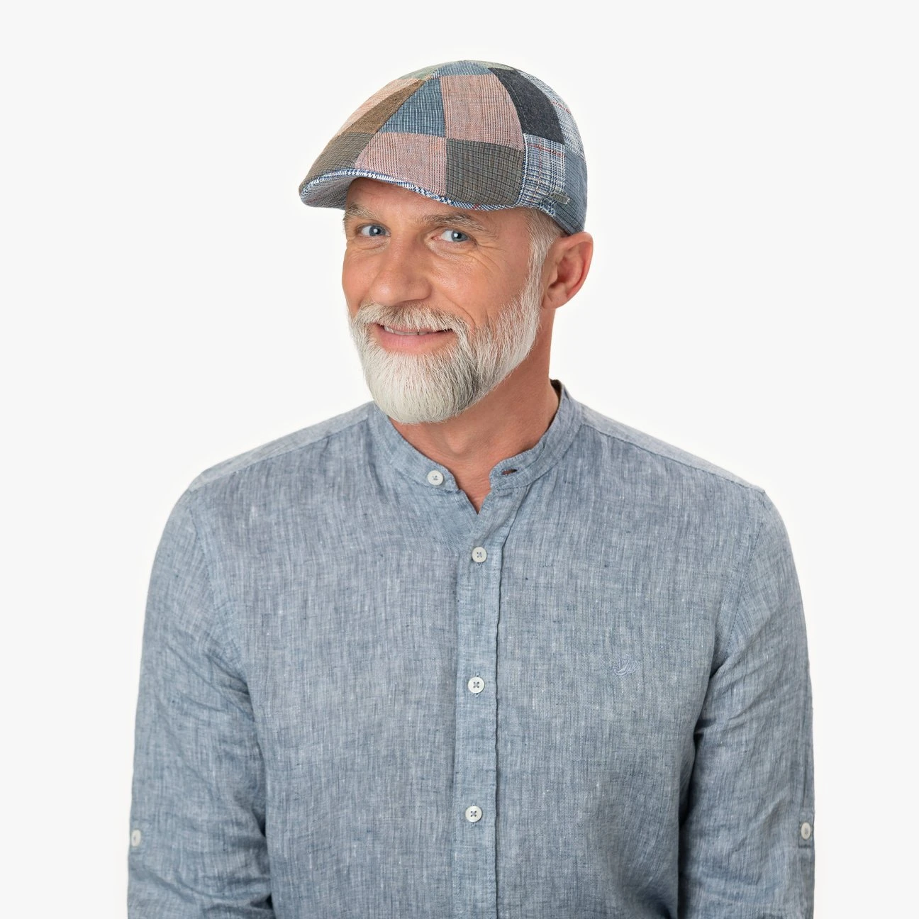 Die unterschiedlich großen Flicken, aus denen die Schirmmütze zusammengesetzt ist, zeigen verschiedene mehrfarbige Muster – ein anregender, inspirierender Look, der Interesse weckt. Ihre hochwertige Ausstrahlung verdankt die Schiebermütze insbesondere der sorgfältig verarbeiteten Materialkombination aus Leinen, Wolle und Baumwolle.