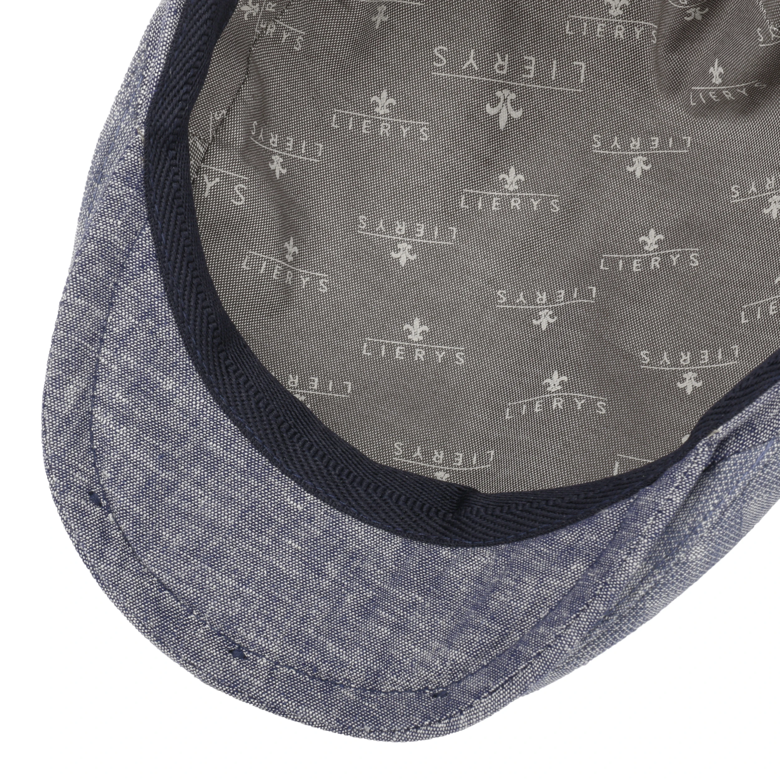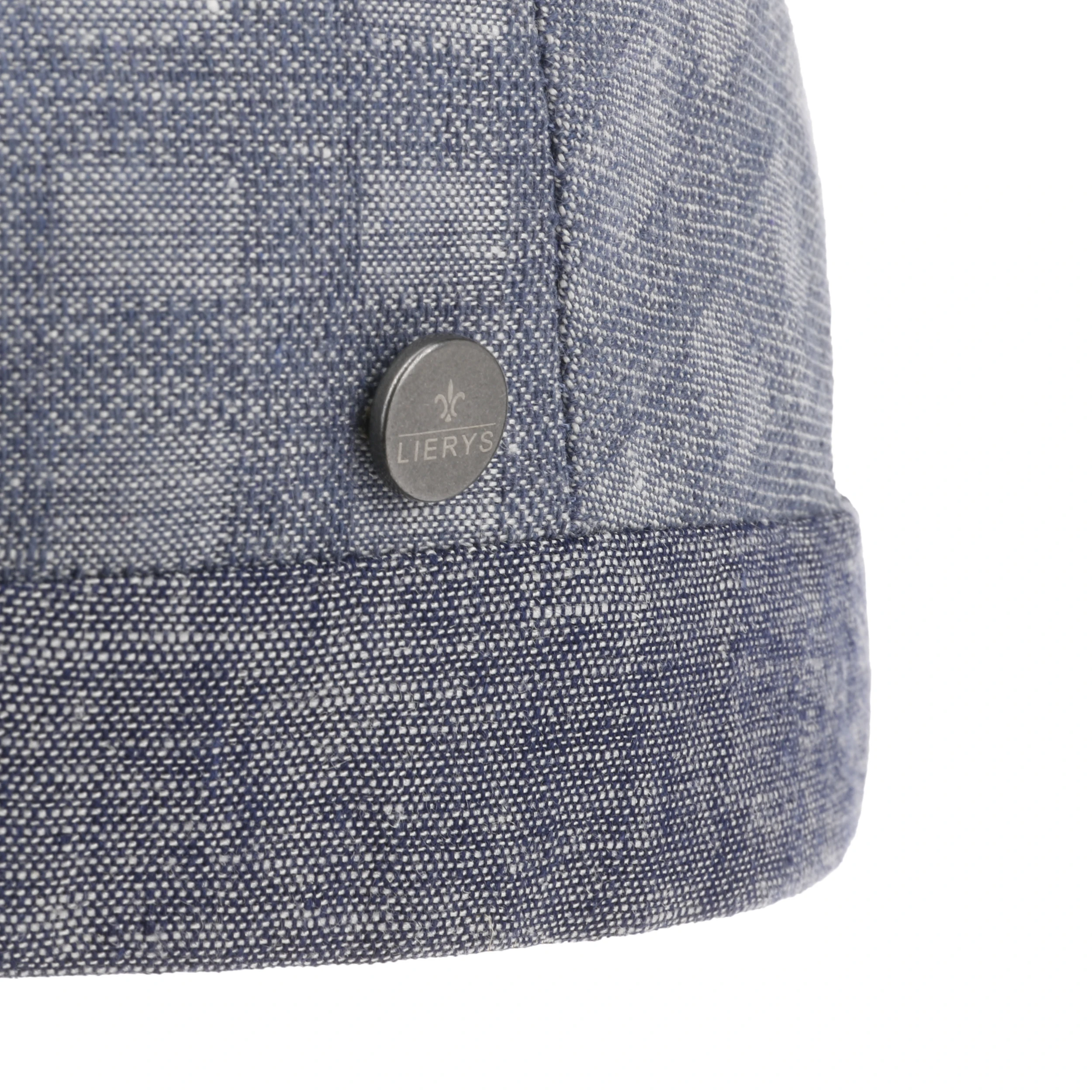Um das sommerliche Klima der handgefertigten Flatcap von Lierys, seitlich mit Markenpin verewigt, kümmern sich Leinen und Baumwolle, unterstützt von baumwollenem Futter.