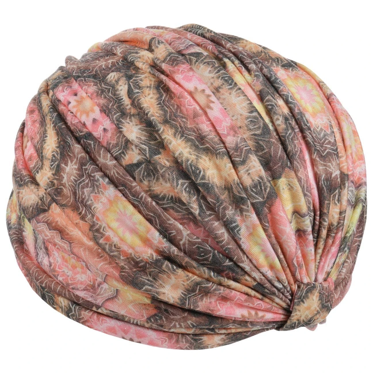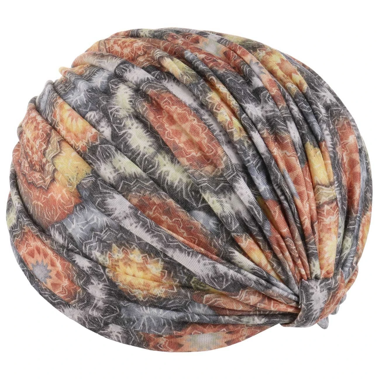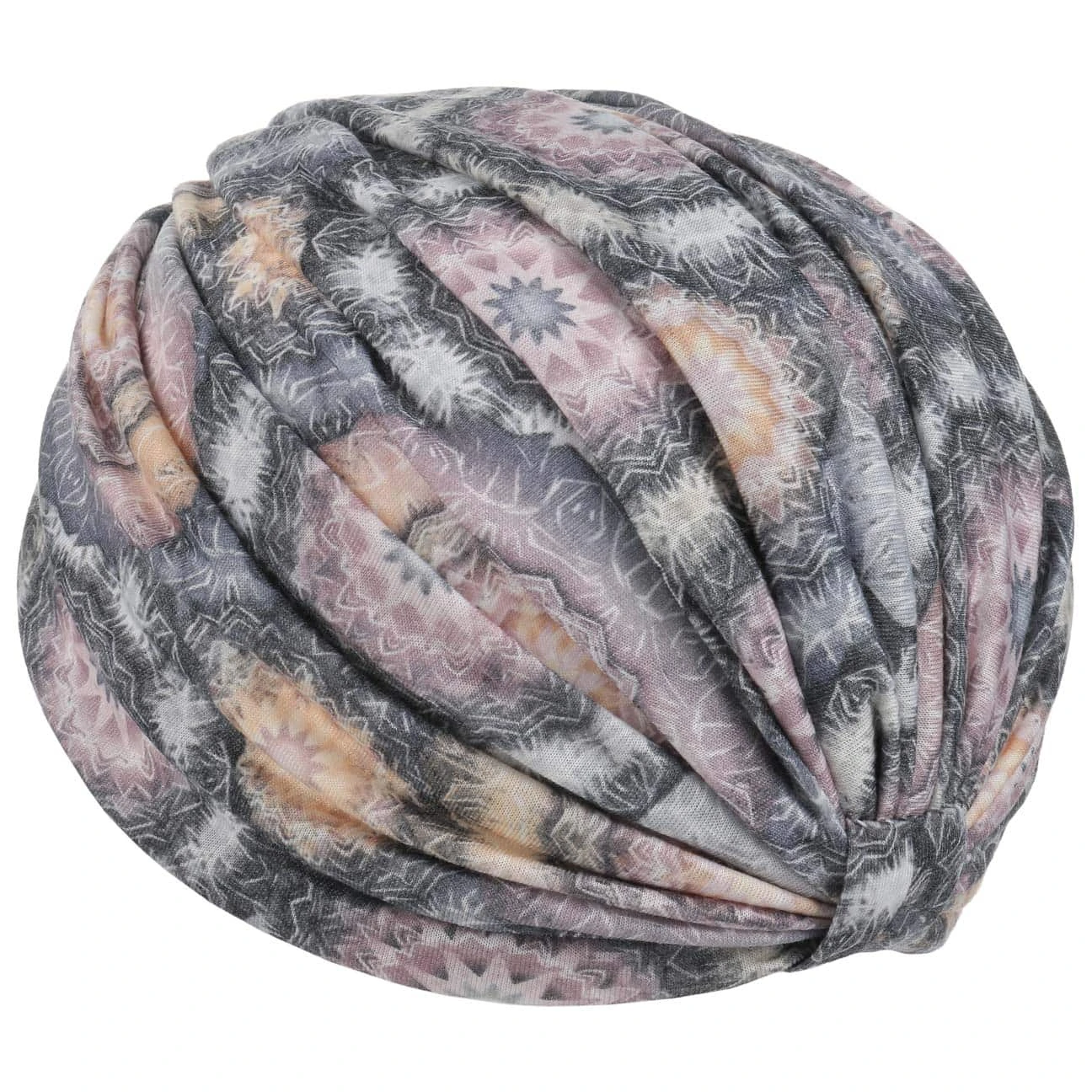 Das Ergebnis ist ein Kopftuch von genauso exotischer wie dynamischer Ausstrahlung. Aufwendig gerafft, präsentiert sich der Turban als feminines Accessoire, das sich hervorragend als Alternative zum Sommerhut tragen lässt. Elastische Baumwolle schmeichelt der Haut und sorgt für eine optimale Passform.